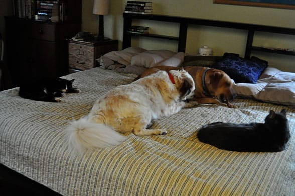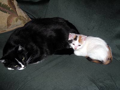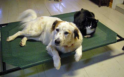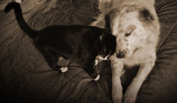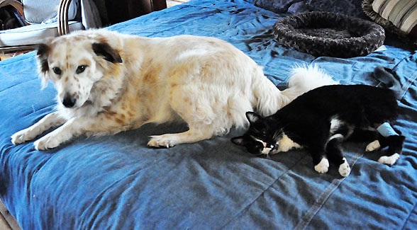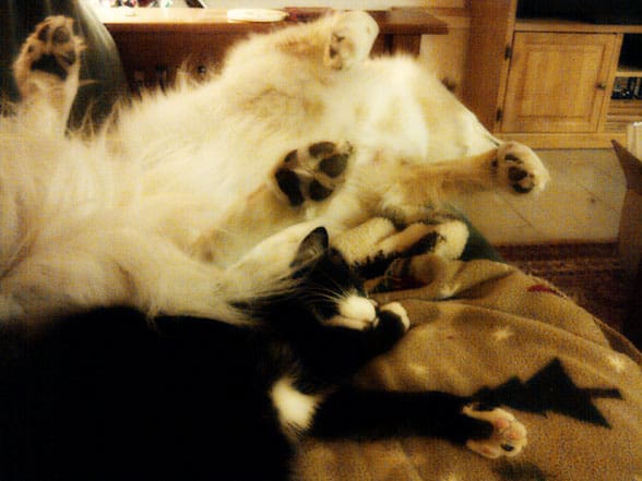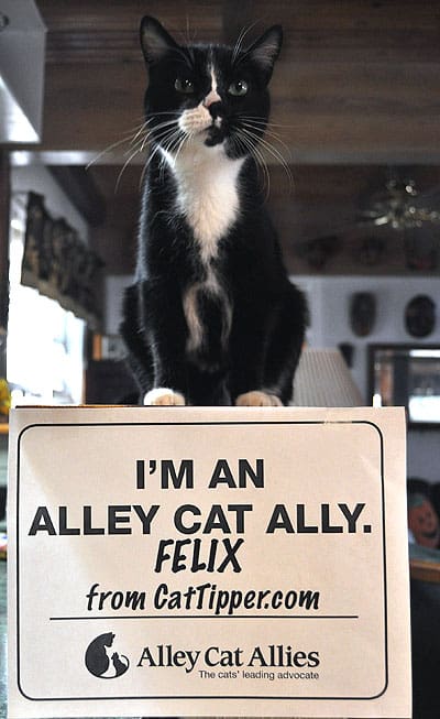 We adopted Felix in April 2000; he was a feral cat about 8 months old at the time. He was being adopted as a barn cat but, from that first day, he lived indoors with the rest of our family. It took a while for us to teach Felix to trust at least some people. In return, he taught us so much more. Along with being big brother to our other cats Linus, Inca, and Coco, he was always best buddies with our dogs Tiki and Irie.