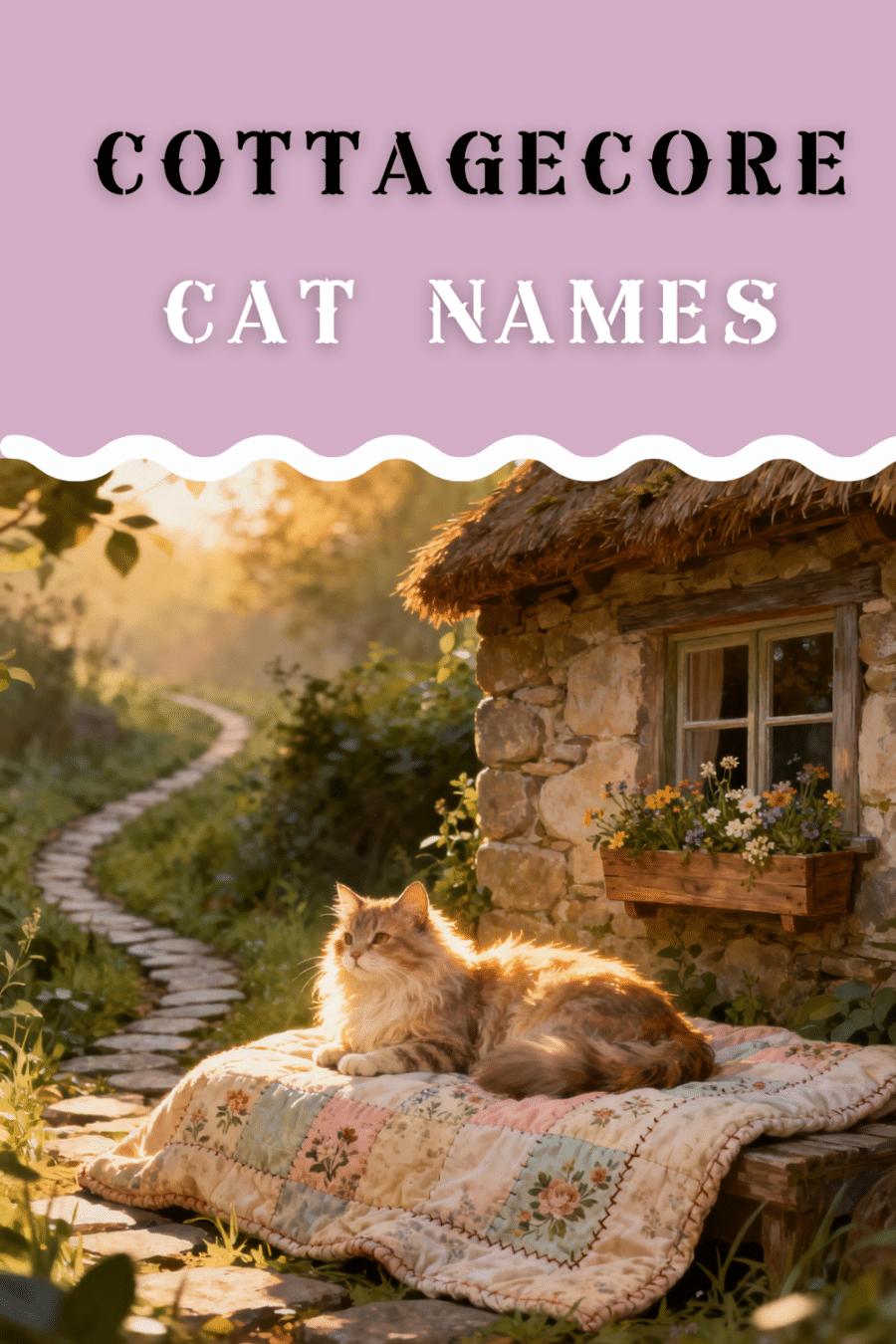 Cottagecore is all about slow mornings, wildflower fields, handwritten letters, baking bread, soft cardigans, herb gardens, and sun-dappled afternoons. If your cat belongs on a windowsill in a country cottage or curled beside a teacup and a novel, this alphabetical list of 200 cottagecore-inspired cat names is filled with rustic charm and gentle meaning.